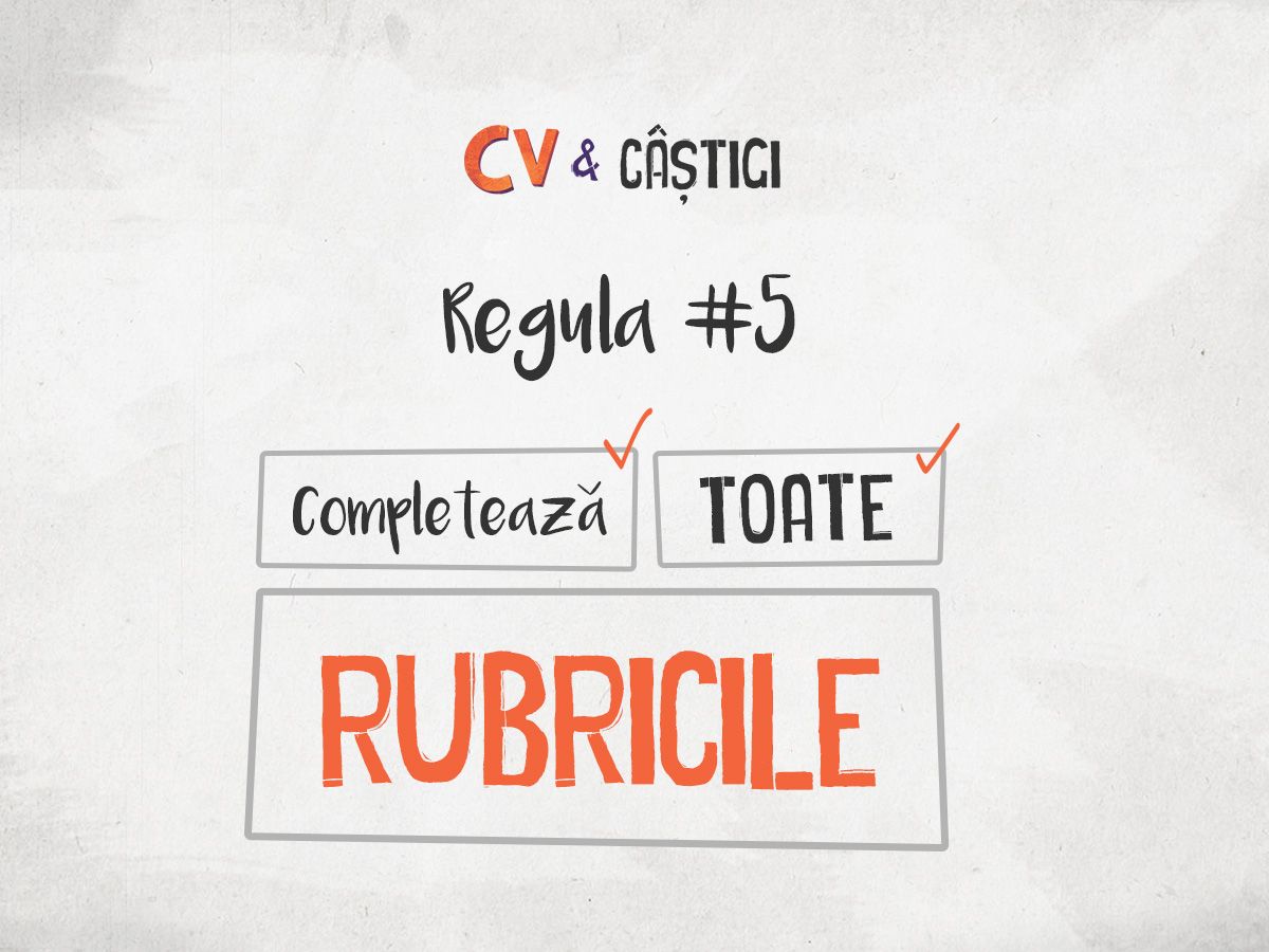 eJobs, cel mai mare site de recrutare online din România, a lansat campania „CV & Câştigi”. Campania vine în ajutorul candidaţilor cu cele mai bune 7 reguli pentru întocmirea unui CV relevant, atât pentru personalitatea şi pregătirea lor, cât si pentru aşteptările angajatorilor. Experienţa de peste 16 ani acumulată de eJobs în domeniul recrutării online se regăseşte în construcţia celor 7 reguli.